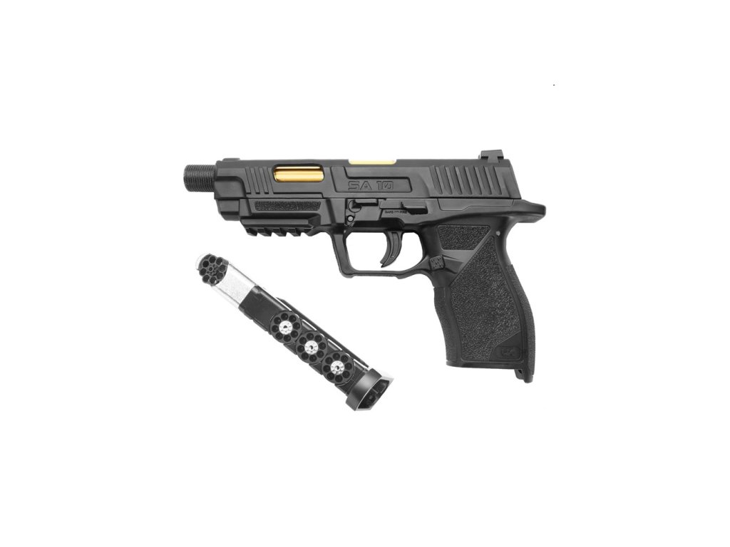 Tento model disponuje kovovým pohyblivým závěrem se systémem BlowBack. Model je určený na olověné diabolo, které se vkládají do kovového věnečku. Díky tomuto střelivu patří SA10 mezi přesné terčové pistole. Závěr modelu je otevřený a je doplněn zlatými doplňky. Výhodou systému BlowBack je například simulovaný trénink, jako u ostré zbraně. Dobře ergonomicky tvarovaná rukojeť, která padne do ruky. Na levé straně pistole se nacházi manuální pojistka proti náhodnému výstřelu, pokud chcete SA10 zajistit, tak je nutno posunout do pozice S. Zásobník na CO2 bombičku je v pažbičce, kde je možno uschovat rezervní věnečky s diabolkami.